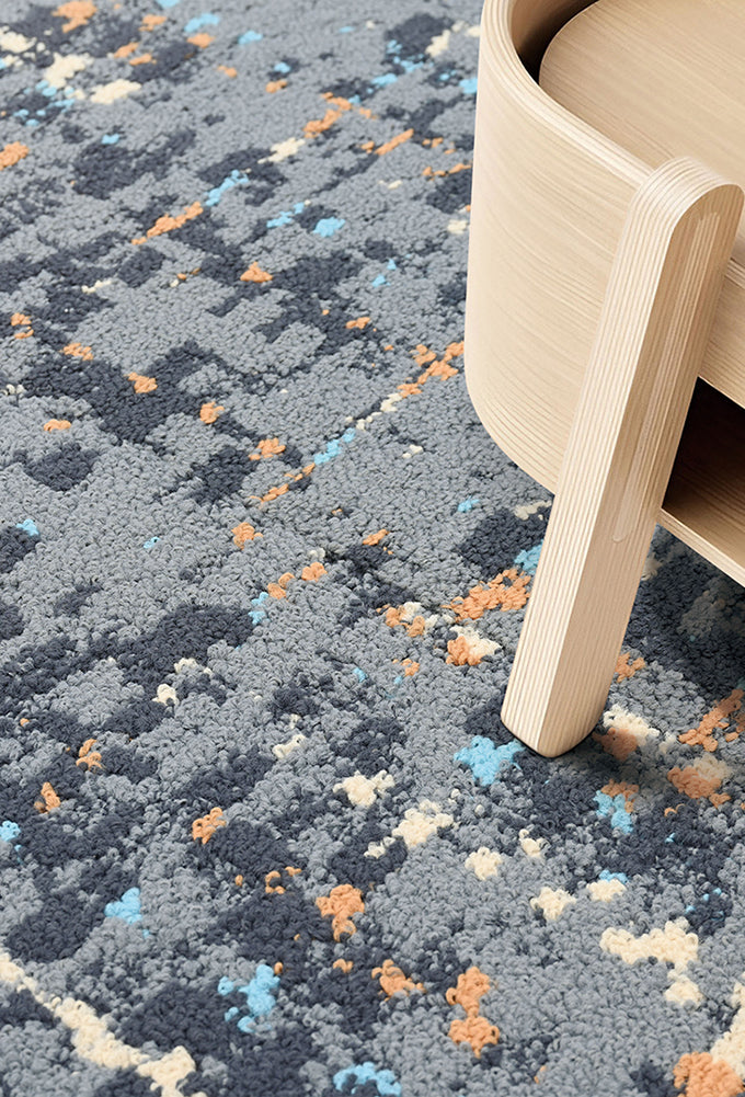 T653 Suburb Carpet Tile offers a dynamic design for residential or commercial applications featuring brushed lines radiating in various directions to produce a one-of-a-kind abstract effect.