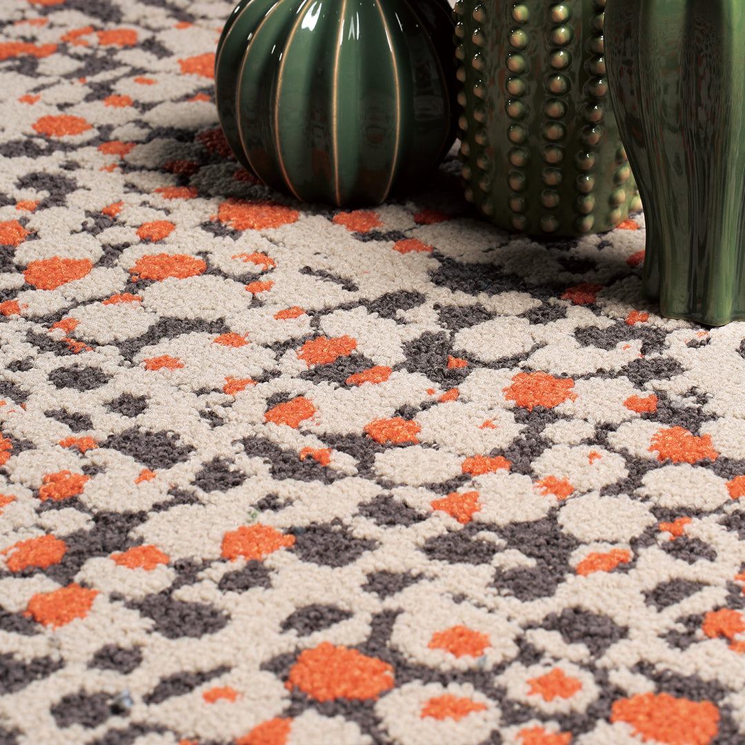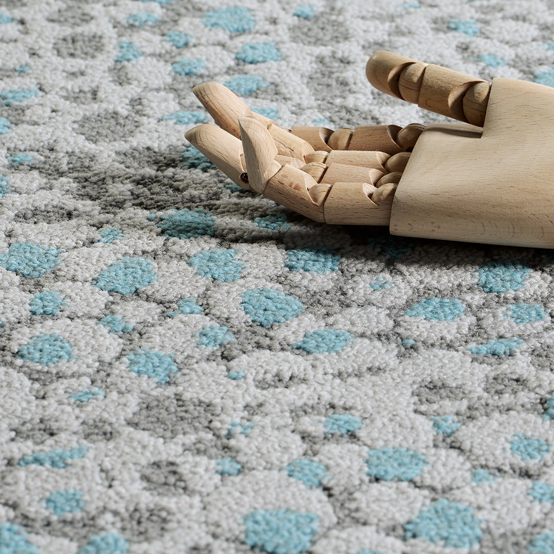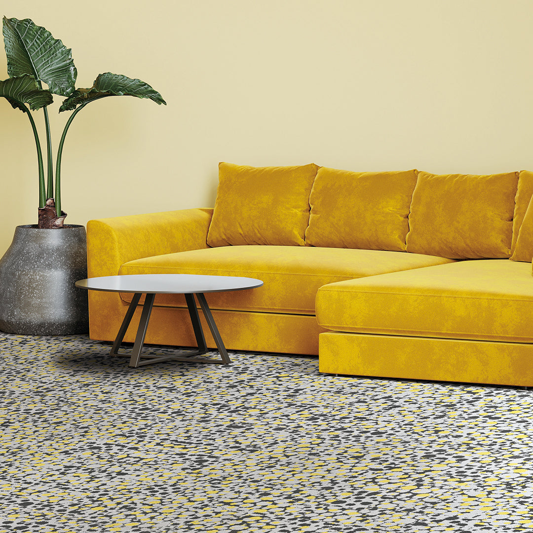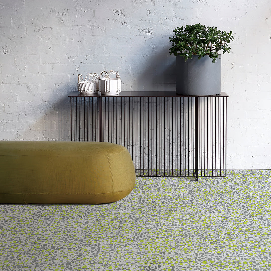 "A lush meadow stretches out, its green expanse dotted with a lively scatter of blossoms. LC08 Bouquet carpet tiles brings the charm and radiance of flowers in full bloom, and with LuxCushion™, every step feels like wandering across a sun-kissed field of softness."