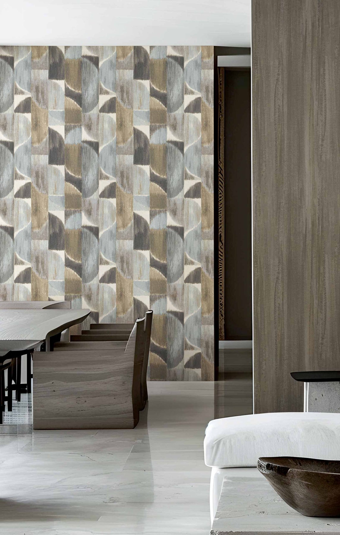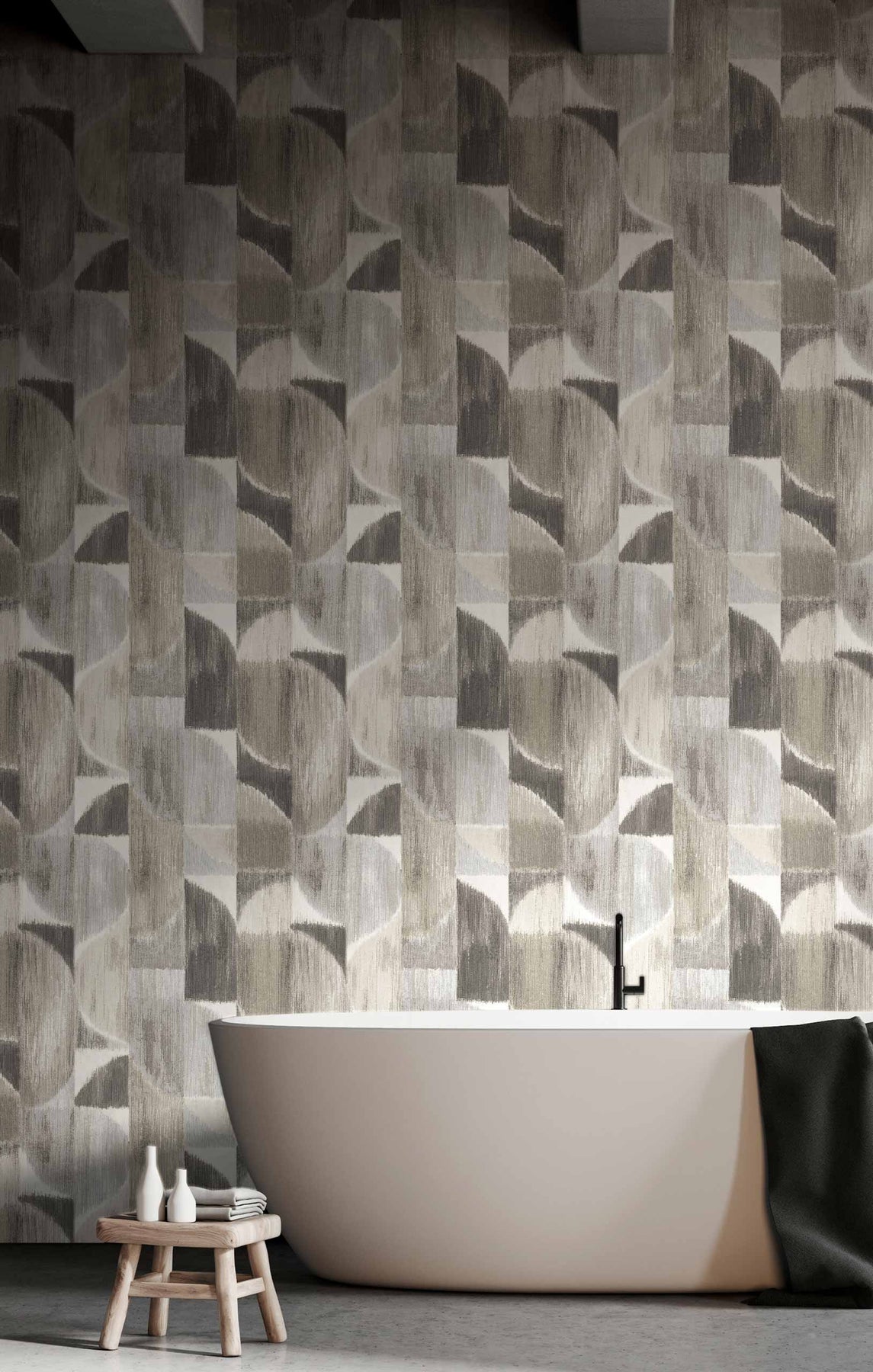 The Sintesi collection is designed to create a distinctive harmony between materials, textures, and sensations. Every element is thoughtfully arranged to achieve a perfect balance, forming a visual language that seamlessly blends elegance with modernity. Refined textures and embossed surfaces merge with subtle luminosity, echoing the sophistication of contemporary architecture. The color palette draws inspiration from nature’s rich hues—soft sand tones, stone shadows, and hints of green—complemented by deeper accents that establish visual connections, transforming any space into an immersive sensory experience.